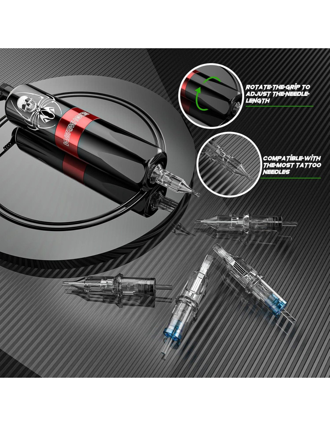 - [Agujas de Cartucho de Tatuaje Premium] : El kit de tatuaje incluye 10 agujas de cartucho de tatuaje Wormhole, con modelos 5RL y 5RM (5 piezas cada uno). Estas agujas de alta calidad están diseñadas para mejorar tu experiencia de tatuaje, proporcionando accesorios confiables tanto para delineado como para sombreado.