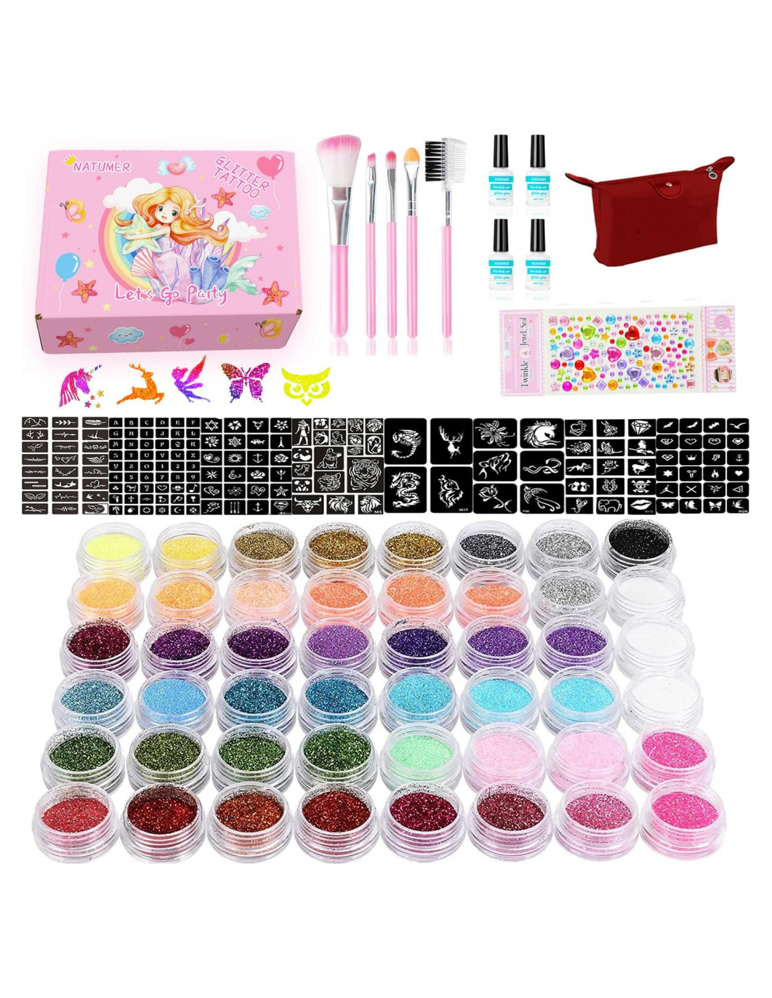 - DIVERSIÓN PARA TODOS: El Kit de Tatuajes de Brillo de 48 Colores es ideal para niños, niñas, adolescentes e incluso adultos y es un excelente regalo para cualquiera que quiera divertirse. Perfecto para todo tipo de fiestas, parques, vacaciones, carnavales, Halloween y Navidad.