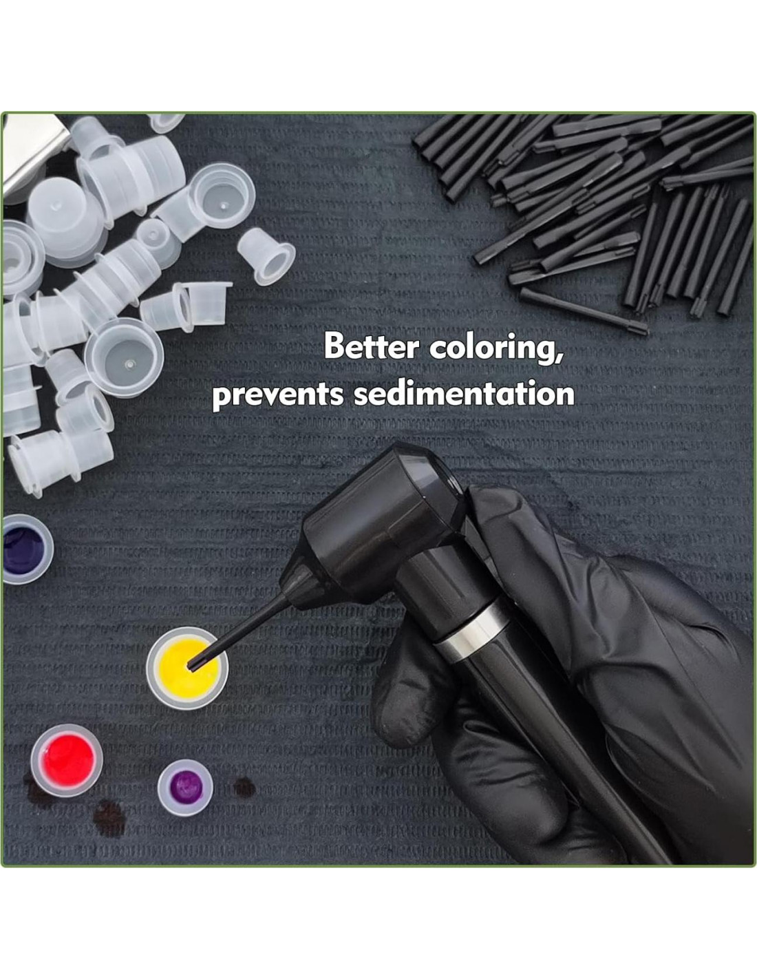 - [Materiales de alta calidad] - Máquina mezcladora de pigmento para tatuajes hecha de plástico de alta calidad y acero inoxidable para un peso ligero y fácil de transportar. Las varillas de mezcla de tinta para tatuajes son desechables, para un solo uso.