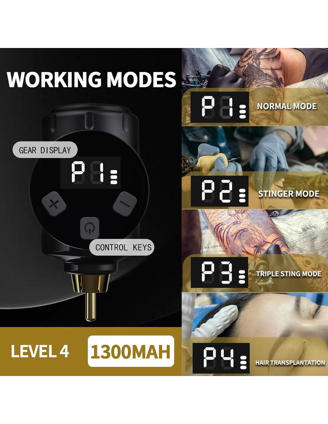 - Máquina de Tatuaje de Doble Batería y Potencia Ajustable Equipado con 2 baterías de litio de alto rendimiento, la pistola de tatuaje ofrece el doble de duración de la batería y satisface las necesidades de creación a largo plazo. El kit de máquina de tatuaje soporta ajuste de múltiples velocidades, permitiendo un control flexible de la fuerza según diferentes condiciones de trabajo, proporcionando una experiencia de nivel profesional que es más despreocupada.