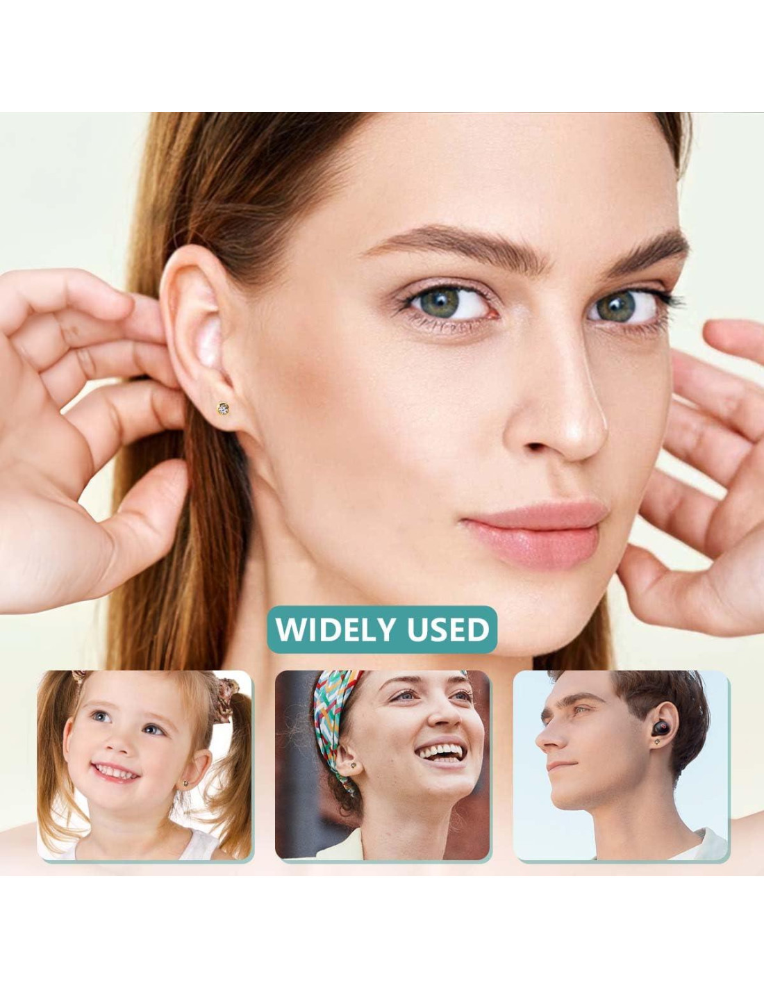 - Fácil de Usar: Paso 1: Limpia tus orejas con un paño de alcohol. Paso 2: marca la posición. Paso 3: presiona en la posición marcada. Paso 4: completa la perforación de la oreja
