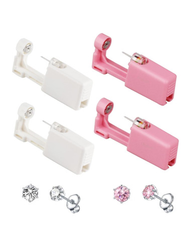 - Paquete: Cada paquete contiene 4 pistolas de perforación de orejas y studs de oreja incorporados, y 4 paños de limpieza. Puedes elegir el color que te guste.