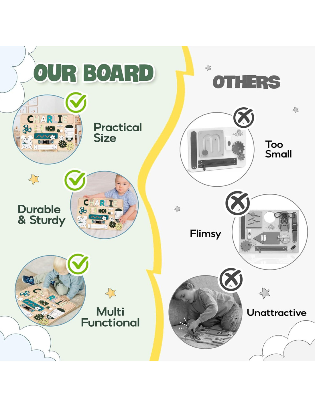 - Seguridad Primero: Asegurar la seguridad de tu hijo es primordial. Este rompecabezas de nombre personalizado para niños va más allá con elementos y ganchos mejorados, reduciendo el riesgo de tragar o dejar caer. Fabricado con madera de alta calidad y adornado con pintura a base de agua, cada borde es tratado para suavidad. El rompecabezas, engrosado para durabilidad, no solo resiste la suciedad sino que también se presenta como un compañero seguro para el tiempo de juego.