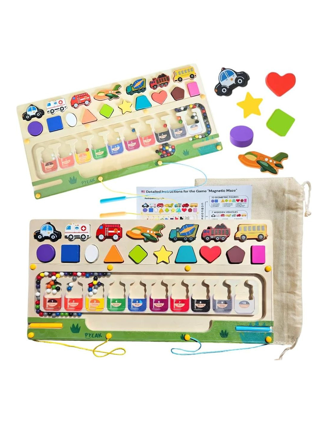 Mejora la coordinación mano-ojo, desarrolla el pensamiento lógico y mejora la concentración. Ideal para promover habilidades motoras y sensoriales en niños de 3 años en adelante. Este laberinto magnético Montessori 3-en-1 invita a los niños a aprender a través de la alegría del juego. Con dos lápices magnéticos, los niños pueden guiar vehículos y formas coloridas a través de un laberinto divertido e interactivo, desarrollando habilidades motoras finas, reconocimiento de colores y habilidades de conteo temprano. El tablero de juego, adornado con la frase conmovedora, 'El tiempo que compartimos jugando con nuestros hijos es un regalo precioso', sirve como un recordatorio del impacto duradero del tiempo de juego compartido. Cada vehículo y pieza de forma mejora las habilidades sensoriales y cognitivas, alentando a los niños a explorar, aprender y crecer. Fabricado con materiales duraderos y seguros para niños, este conjunto está diseñado para niños de 3 años en adelante, fomentando la creatividad y la resolución de problemas en un entorno seguro. Perfecto tanto para el hogar como para llevar, viene con una conveniente bolsa de almacenamiento. Haz de este Laberinto Magnético parte de los momentos de juego atesorados de tu familia, ideal como un regalo considerado para cumpleaños, festividades o cualquier ocasión donde el aprendizaje se encuentra con el amor. Este Laberinto Magnético Montessori invita a los niños a una experiencia de aprendizaje única, llena de colores, formas y vehículos que capturan su curiosidad y energía. Con dos lápices magnéticos y un diseño interactivo, los niños pueden mover bolas coloridas a través de caminos diseñados para mejorar las habilidades motoras finas, la coordinación mano-ojo y el reconocimiento de colores y formas. En esta imagen, un niño muestra emocionado su nuevo juego, un laberinto que convierte el aprendizaje en diversión y descubrimiento. El juego incluye figuras de vehículos como un avión, una ambulancia y un camión de bomberos, así como formas geométricas vibrantes, invitando a los más pequeños a explorar y aprender a través del juego. Hecho con materiales seguros y duraderos, es ideal para niños de 3 años en adelante, promoviendo el aprendizaje independiente en un entorno atractivo y estimulante. Perfecto para el hogar o para llevar, este laberinto magnético es un regalo especial para cumpleaños o cualquier ocasión donde el juego y el aprendizaje se unan, creando recuerdos preciosos en cada momento de diversión.