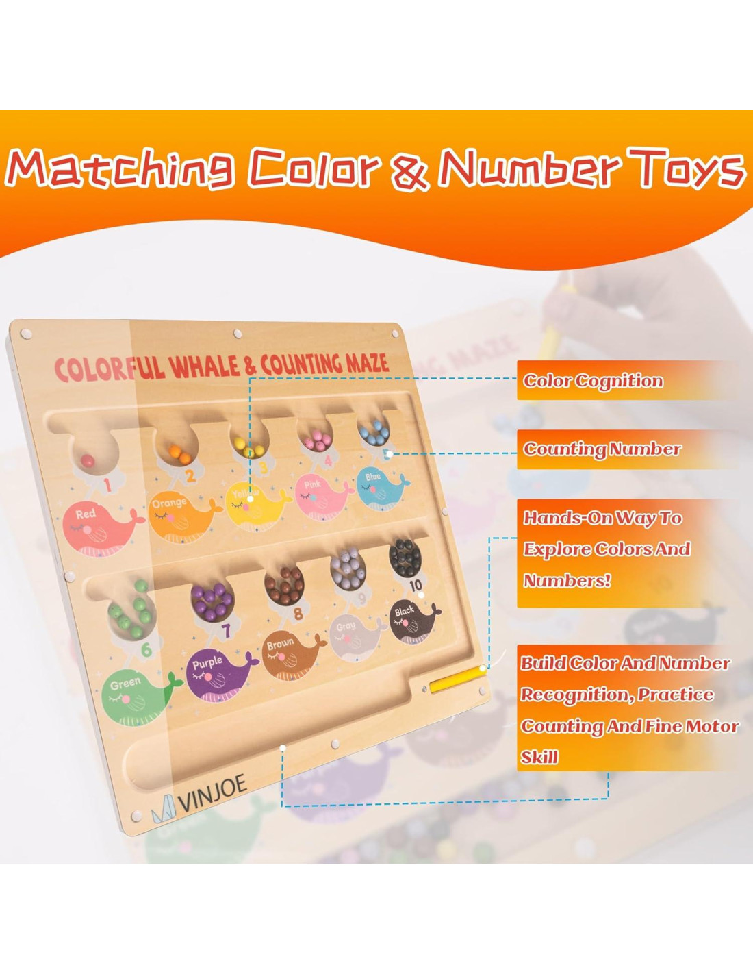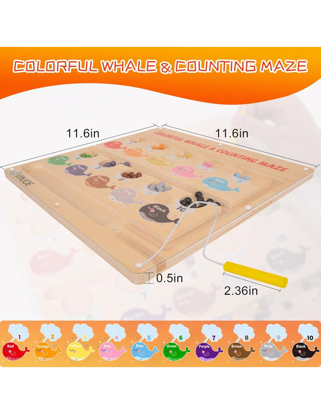 - Juego magnético para niños que ayuda a aprender colores y conteo, con 10 "Ballenas lindas lanzando agua" y 55 "perlas de agua de colores". Cada ballena de color tiene un número del 1 al 10 en su cuerpo. ¡Los niños necesitan usar una varita magnética para mover las "perlas de agua" hacia el gran globo de agua sobre la cabeza de la ballena! Un juguete educativo divertido ideal para que los niños desarrollen habilidades motoras finas, así como para clasificar colores y contar.