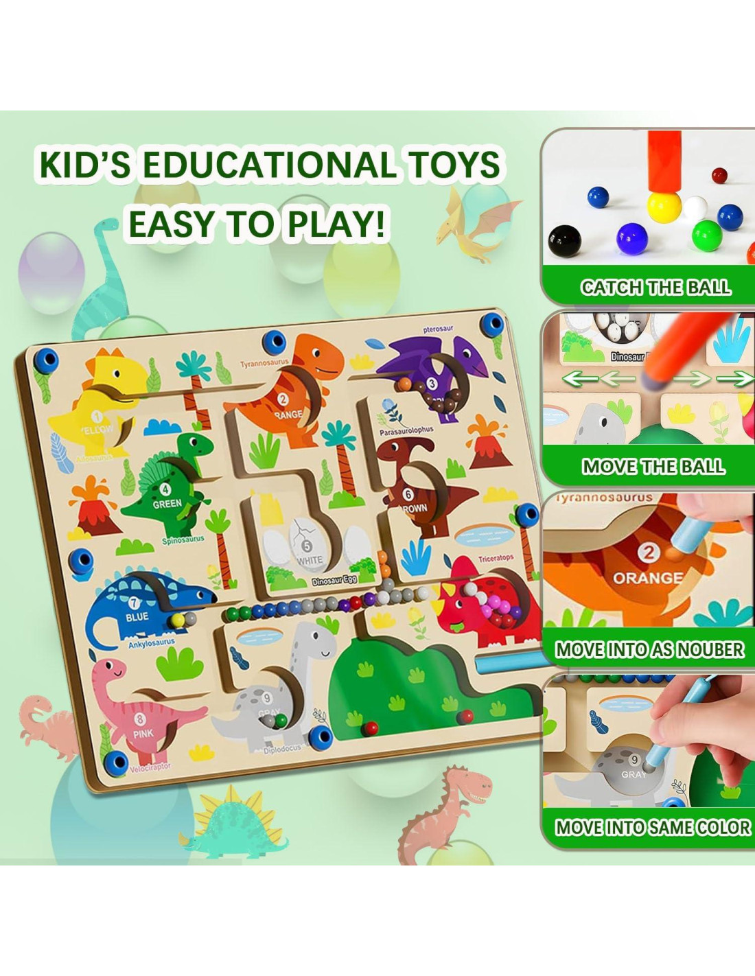- Construcción Robusta - Este juguete Montessori de madera está hecho de madera natural de alta calidad y extra gruesa y pintura a base de agua no tóxica con bordes y esquinas suaves, fijado con 8 clavos para asegurarse de que sea robusto y seguro para que las manos pequeñas operen. La varita magnética adjunta está fijada al tablero para un fácil almacenamiento.