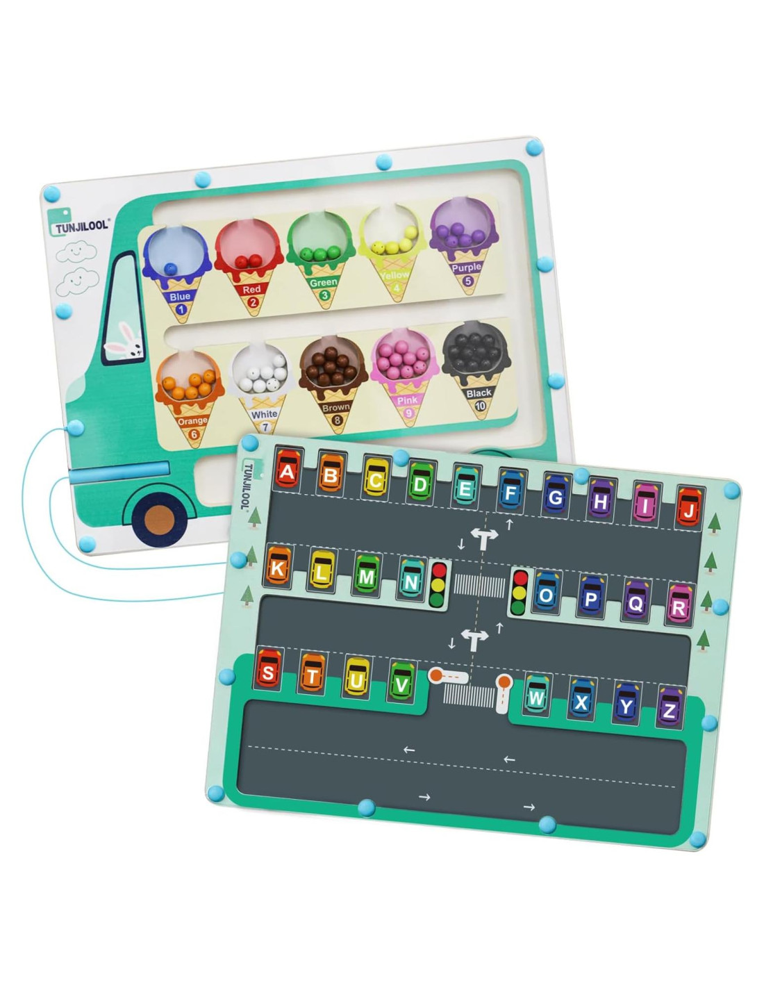 - [LABERINTO DE CLASIFICACIÓN DE COLORES DE HELADO] Aprende a clasificar colores y contar con este divertido laberinto temático de helados. Usando el bolígrafo magnético, los niños emparejan colores y números con conos de helado correspondientes, mejorando las habilidades motoras finas y el desarrollo cognitivo.