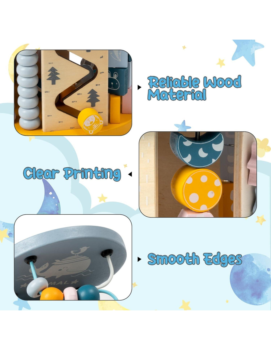 - MATERIAL CONFIABLE: Está hecho de madera confiable, tiene una estructura robusta, no es fácil de dañar o romper, y se puede usar durante mucho tiempo. Está impreso con pintura a base de agua y tiene una superficie suave y sin astillas para garantizar la seguridad de tu bebé mientras juega.