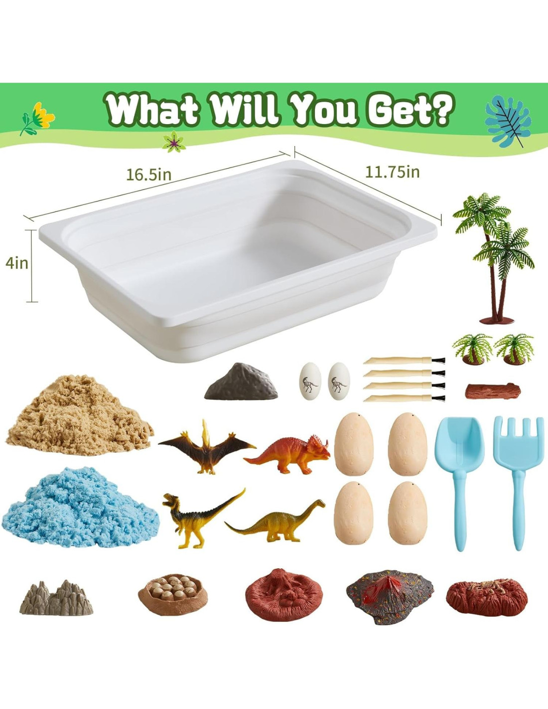 - [REGALO PERFECTO PARA NIÑOS] Nuestros juguetes de caja de arena de dinosaurios vienen con una caja de paquete diseñada exclusivamente. Es un regalo maravilloso para niños y niñas para cumpleaños, Navidad, Pascua y otras festividades. Si tienes alguna pregunta, ¡simplemente contacta a nuestro servicio al cliente!