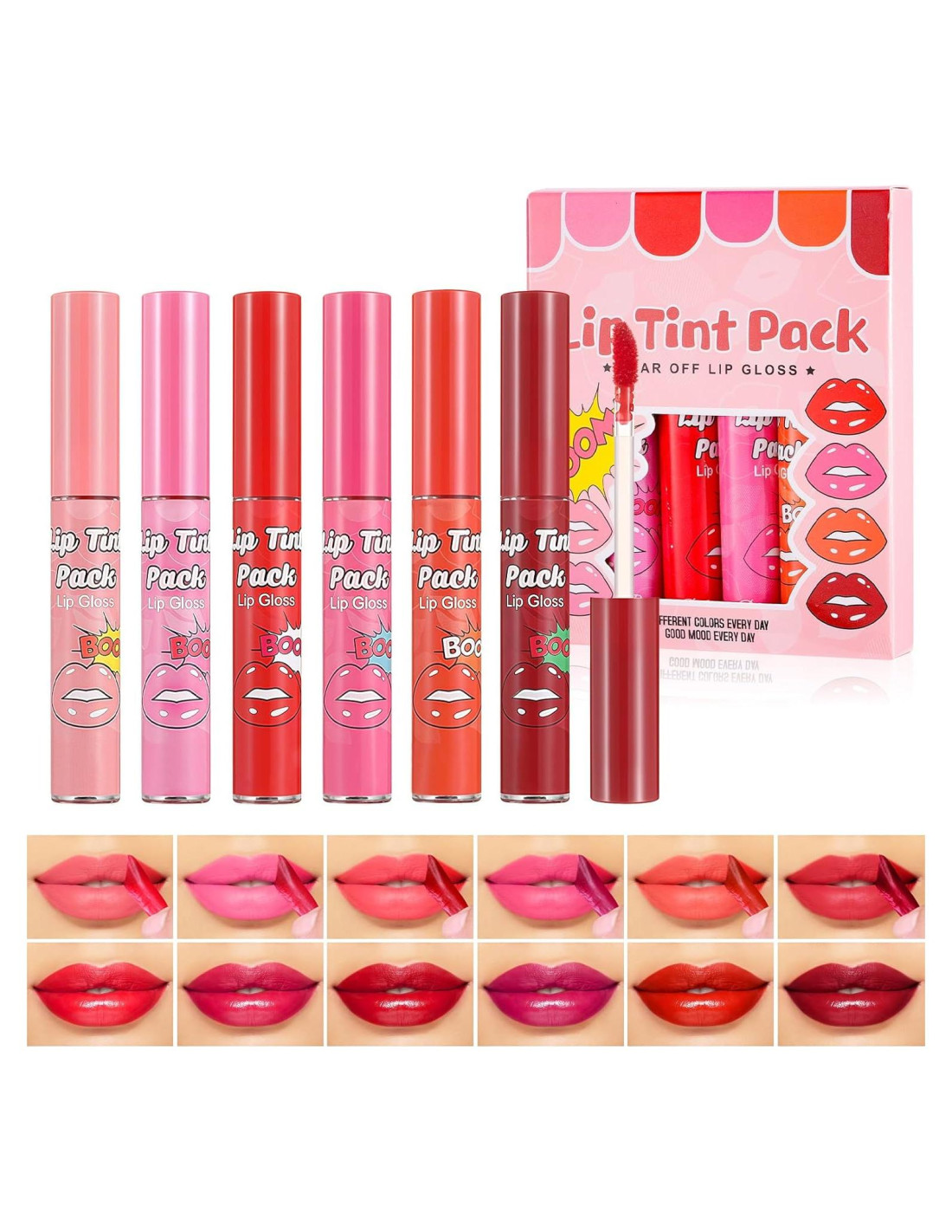 - COMBINACIÓN MULTICOLOR: Este set de tinte de labios peel off viene en 6 tonos diferentes, desde un maquillaje ligero diario hasta un maquillaje llamativo, cada color se puede adaptar a diferentes maquillajes para satisfacer las necesidades de las mujeres y crear labios impresionantes, y mejorar enormemente el encanto personal.