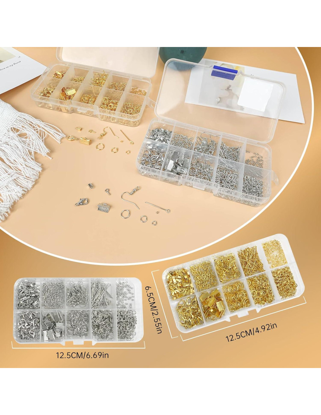 - Kit de Reparación de Joyas: Incluye 24 agujas, 3 enhebradores de agujas, 1 abridor de anillos de salto, 2 anillos de dedal, 3 alicates de joyería, 1 punzón, 1 pinzas, 1 tijeras para hilo, 1 cinta métrica, 1 cinta métrica para pulseras, 1 calibrador, 2 rollos de alambre de cobre en plata y oro, 2 rollos de cordón de hilo para cuentas (0.1 y 0.5), 2 rollos de cordón para collares, 1420 Pcs de reparación en plata y oro, incluyendo las herramientas básicas y hallazgos que necesitas para la mayoría de los proyectos de fabricación de pendientes, reparación de collares y arreglo de pulseras.