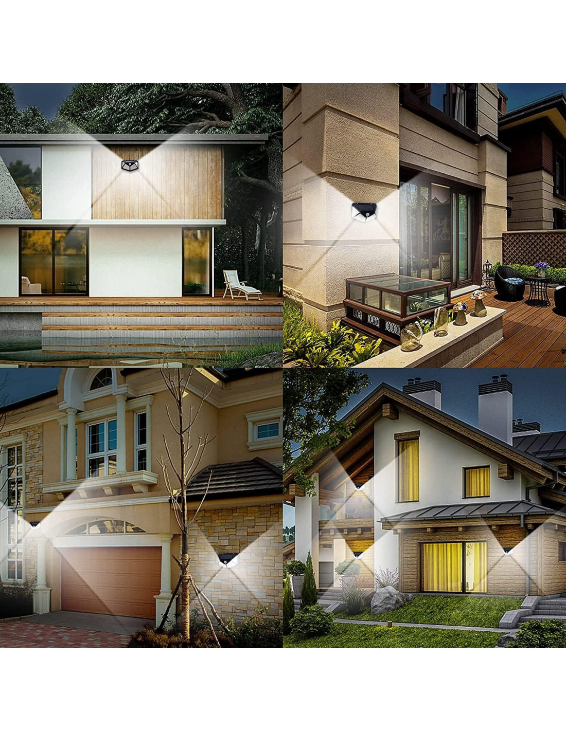 - 100 LED Ultra-Brillantes Luces de Movimiento Solares para Exterior 6 paquete de luces solares para exterior están equipadas con 100 perlas LED más brillantes cada paquete, que tienen mayor brillo y mayor vida útil. Estas luces solares están equipadas con batería de 2000mAh y solo tardan de 6 a 8 horas en cargarse completamente bajo luz solar directa. El ángulo de iluminación es de hasta 270, lo que brinda un área de iluminación más amplia y brillante y hace que tu camino a casa sea más seguro y cálido.