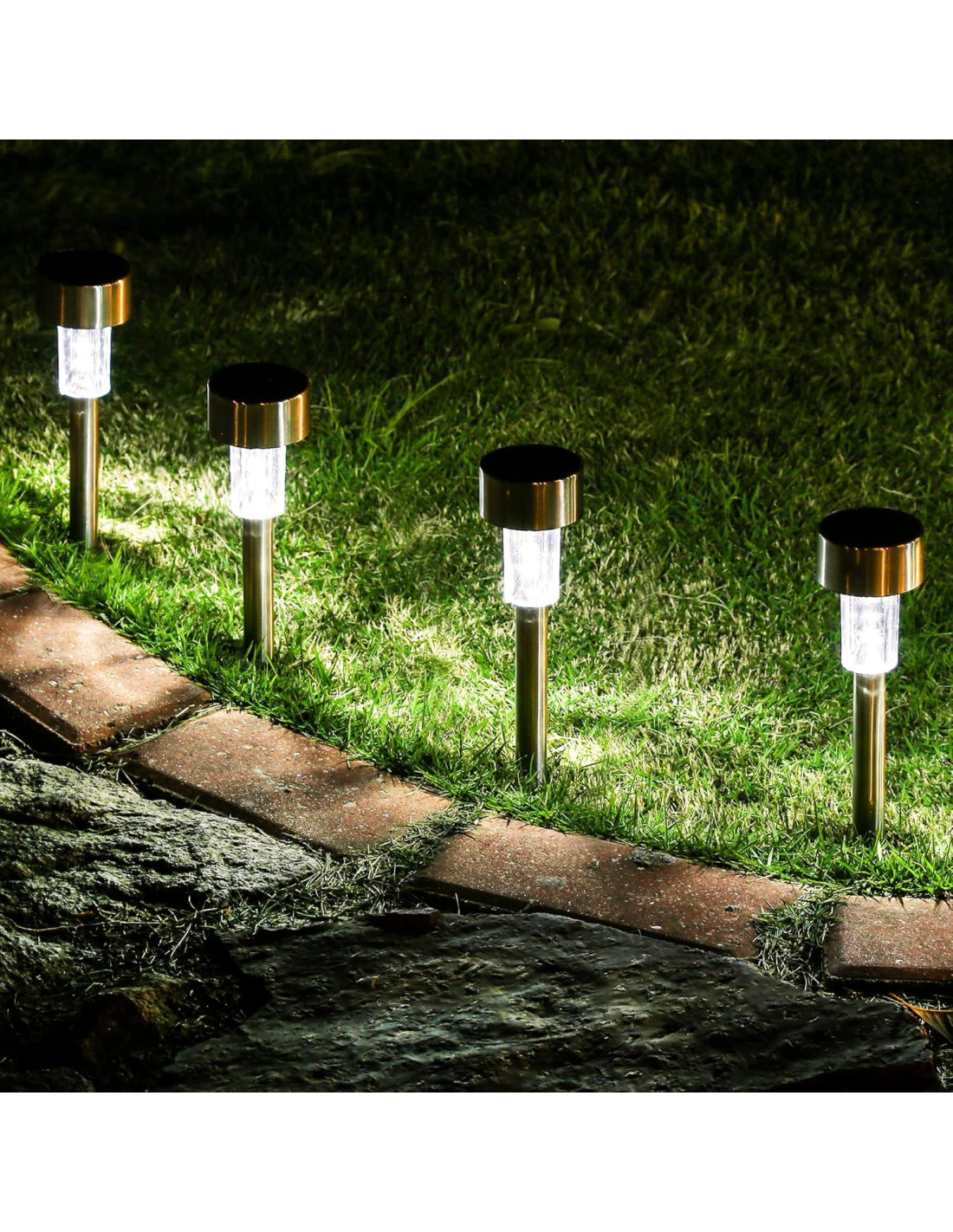 - DISEÑO ELEGANTE Las luces solares impermeables son adecuadas para cualquier camino. Decora tu entrada, pasillo, camino del jardín, terraza, patio o cualquier otro lugar al aire libre para iluminar la noche.