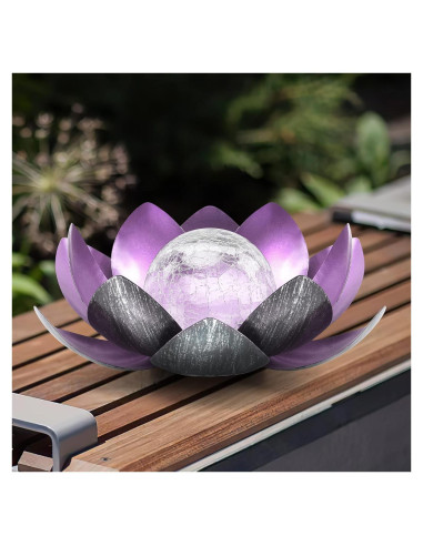 - [Decoración romántica] Por la noche, emiten un cálido resplandor blanco, brindando un encantador efecto decorativo a tu jardín por la noche. La hermosa forma de loto y los sutiles patrones de ondas de agua se exhiben en tu terraza de una manera especial, y los hermosos efectos visuales crean una atmósfera romántica. Este es tu regalo preferido para familiares y amigos.