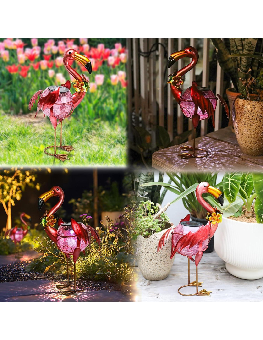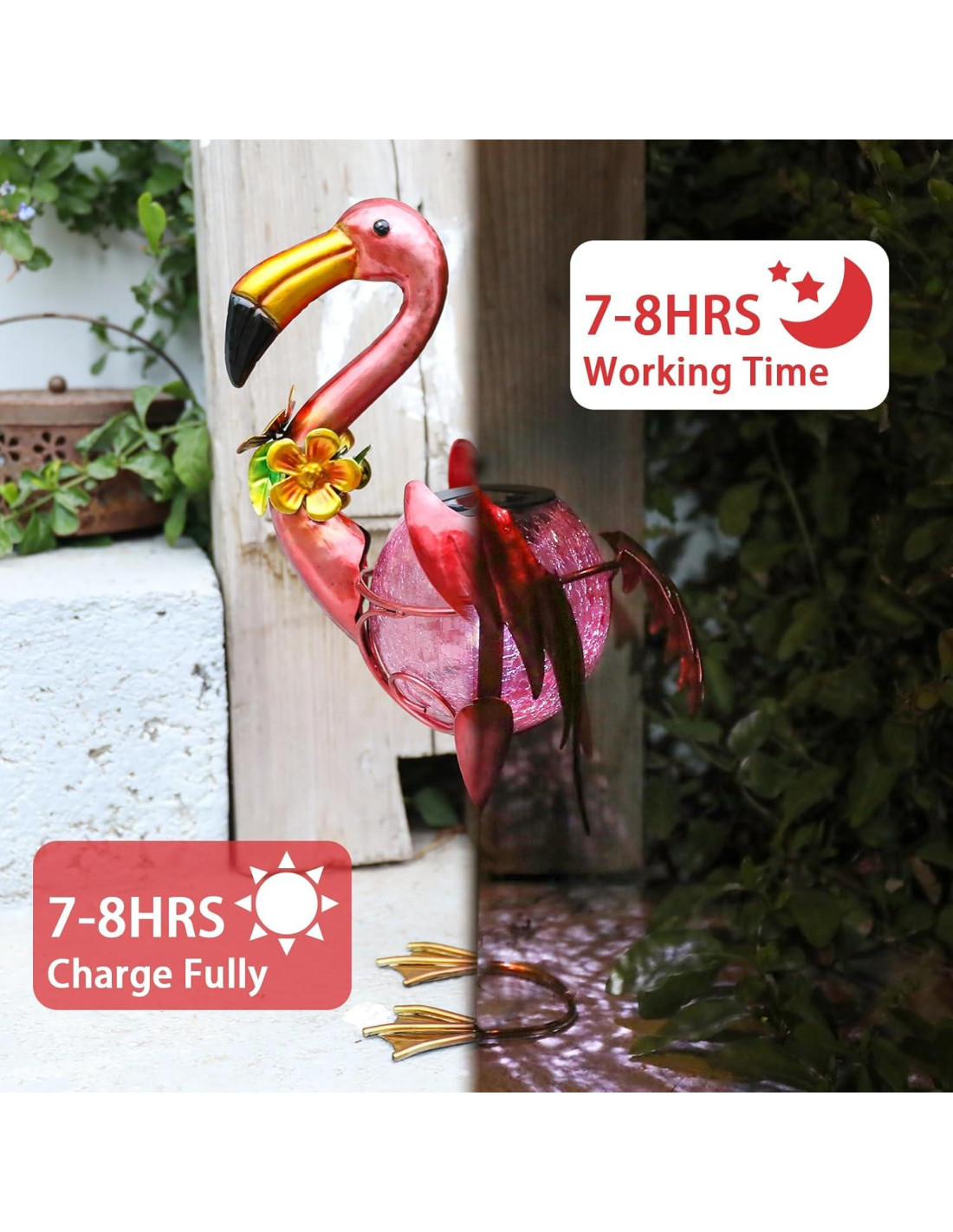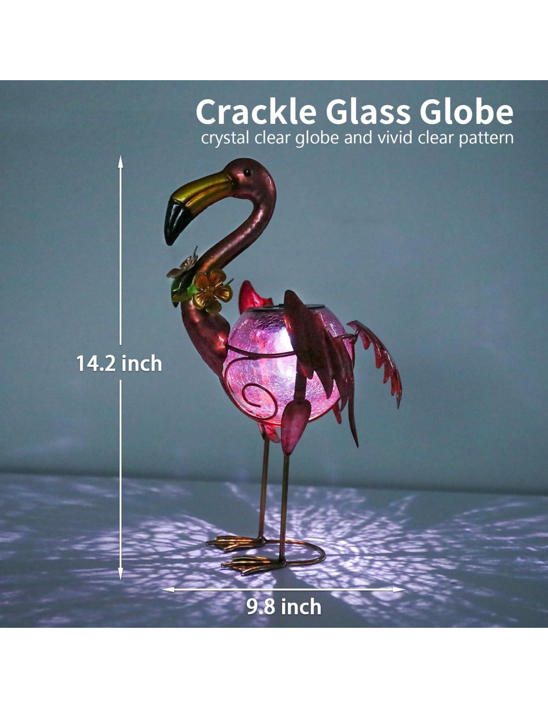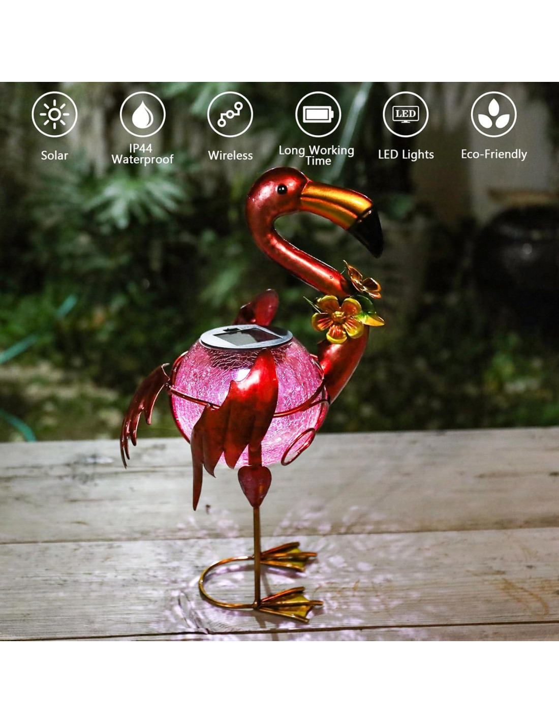 - Las decoraciones de jardín solares de flamenco están diseñadas con un patrón de flamenco colorido y vívido y una esfera de vidrio agrietado, hacen que esta luz solar de flamenco sea más linda y adecuada para decoraciones de jardín exterior.