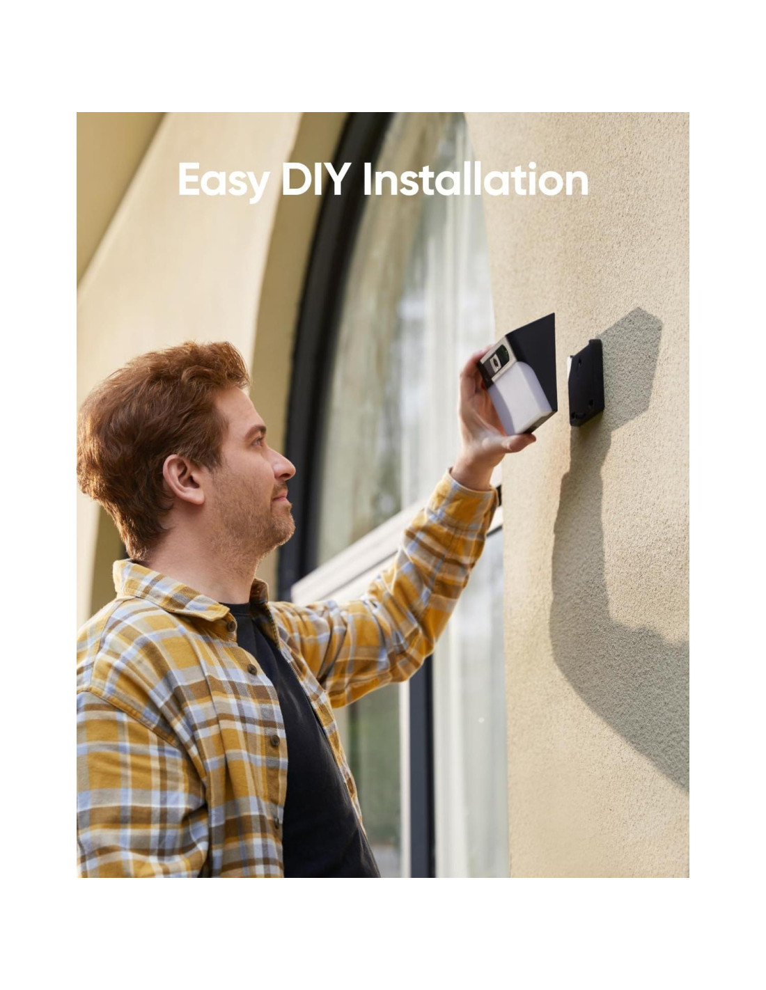 - Luz y Cámara Todo en Uno: Una cámara y luz integradas monitorean el exterior de tu hogar e iluminan espacios con 300 lúmenes de brillo. La luz es cómodamente brillante, pero no te molestará a ti ni a tus vecinos por la noche. Además, la luz se enciende automáticamente con la activación por movimiento.