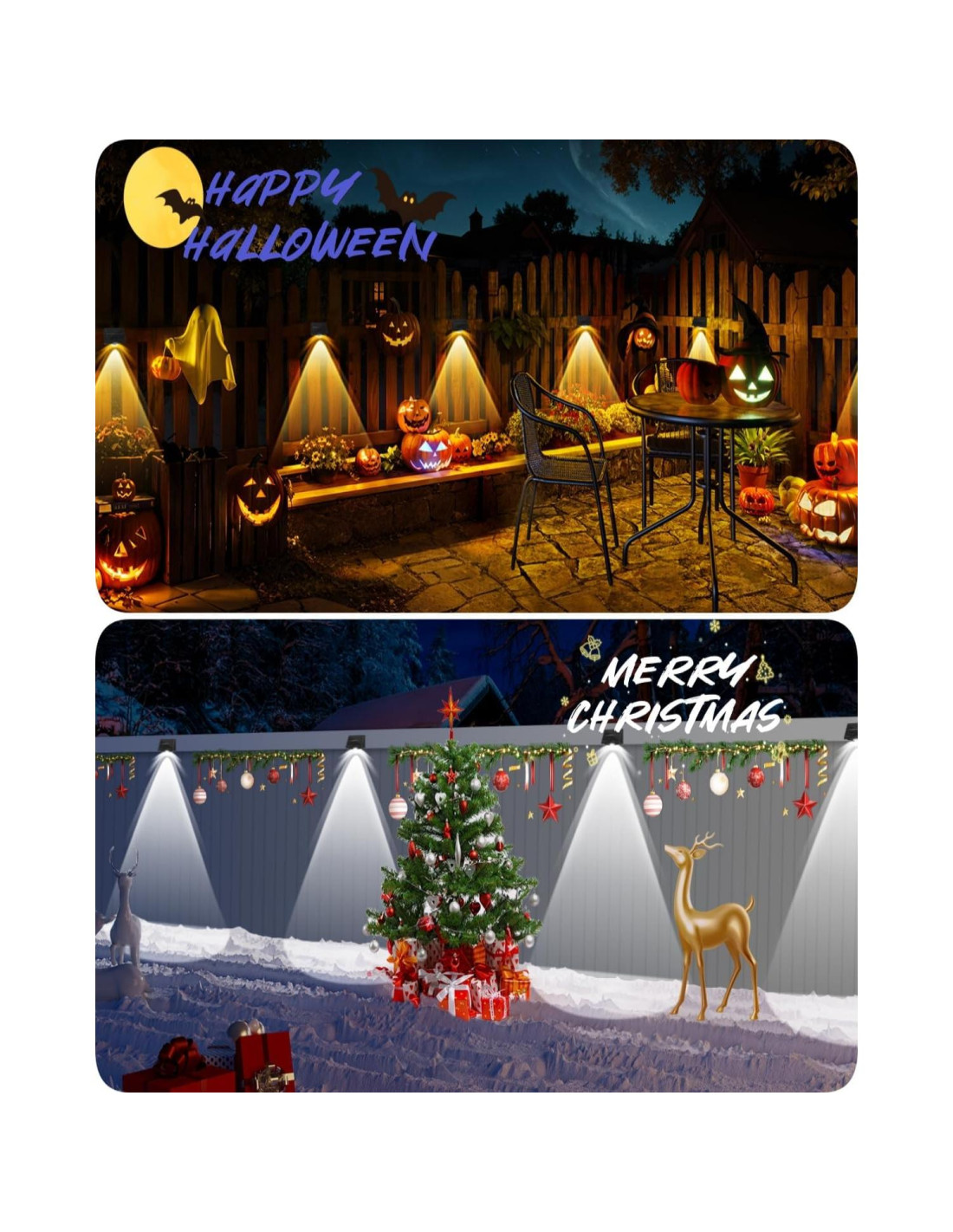 - [7 Modos y 10 Colores] - Las luces de cerca solares proporcionan 7 modos: blanco frío, blanco cálido, blanco natural, color fijo, color mezclado, parpadeo RGB, respiración RGB. Es una gran opción usar luz cálida o fría para decorar tu cerca y agregar luz llamativa a tu jardín. Durante festivales, usar RGB hará que la atmósfera sea más animada. Lo más importante, puedes elegir qué colores fijar, combinar los colores de la iluminación y mostrarlos en tu patio trasero.