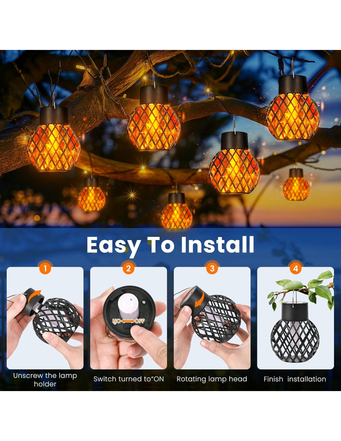 - Diseño Único: Nuestras luces colgantes solares cuentan con una forma de linterna más grande y mejorada con un efecto de llama parpadeante. Las luces solares de llama sirven como la decoración exterior ideal para jardín, patio, árboles, camping, cercas, decoración de otoño, y hacen que tu jardín sea distinto en la comunidad. También son un regalo ideal para tu familia y amigos en cumpleaños, inauguración de casa, Halloween, Navidad u otros eventos y festivales.