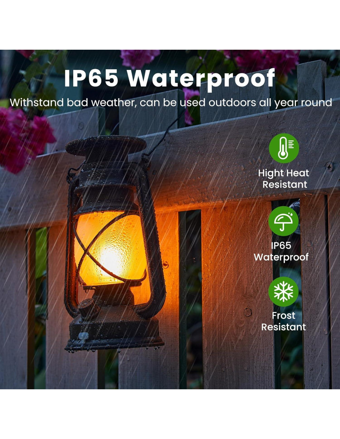 - 2 Modos de Iluminación y Lámpara Solar Colgante Resistente: Estas lámparas solares para el jardín tienen modo de llama y modo de iluminación constante, se cambia el modo a través del botón de la lámpara. Estas lámparas solares son tanto prácticas como decorativas. Las luces solares para exterior están diseñadas con grado de impermeabilidad IP65, aseguran que la lámpara recargable pueda soportar el mal tiempo, sin más preocupaciones por la lluvia, nieve, heladas o aguanieve, perfecta para uso exterior. La lámpara recargable dará a tu jardín y patio una sensación agradable y acogedora.