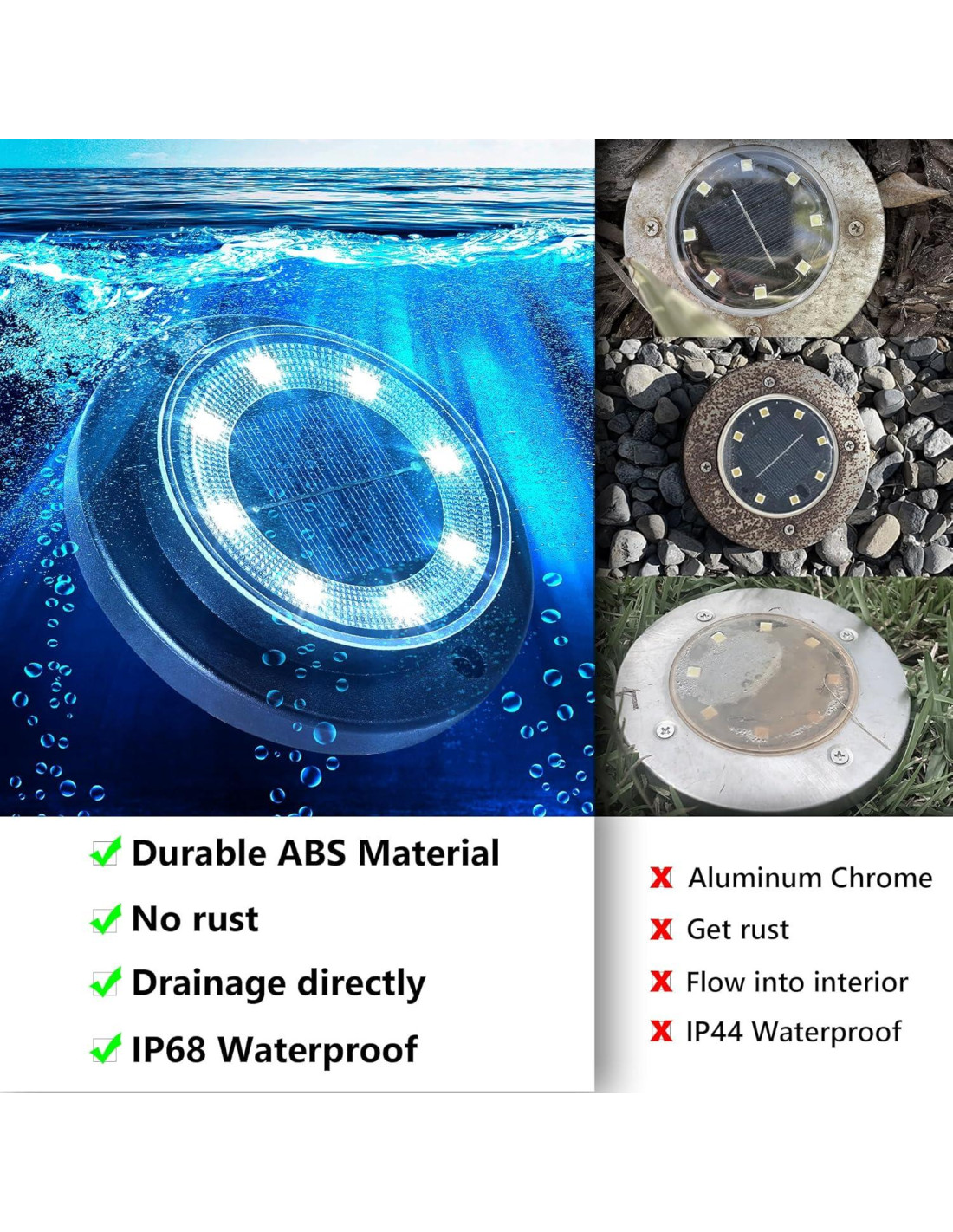 - Nuevo y Mejorado: Nuestro último lanzamiento de luces de disco de suelo viene con características refinadas. Aseguran que tu jardín se mantenga iluminado incluso después del anochecer. Y si tienes alguna pregunta o inquietud, nuestro servicio al cliente está aquí para ayudar.