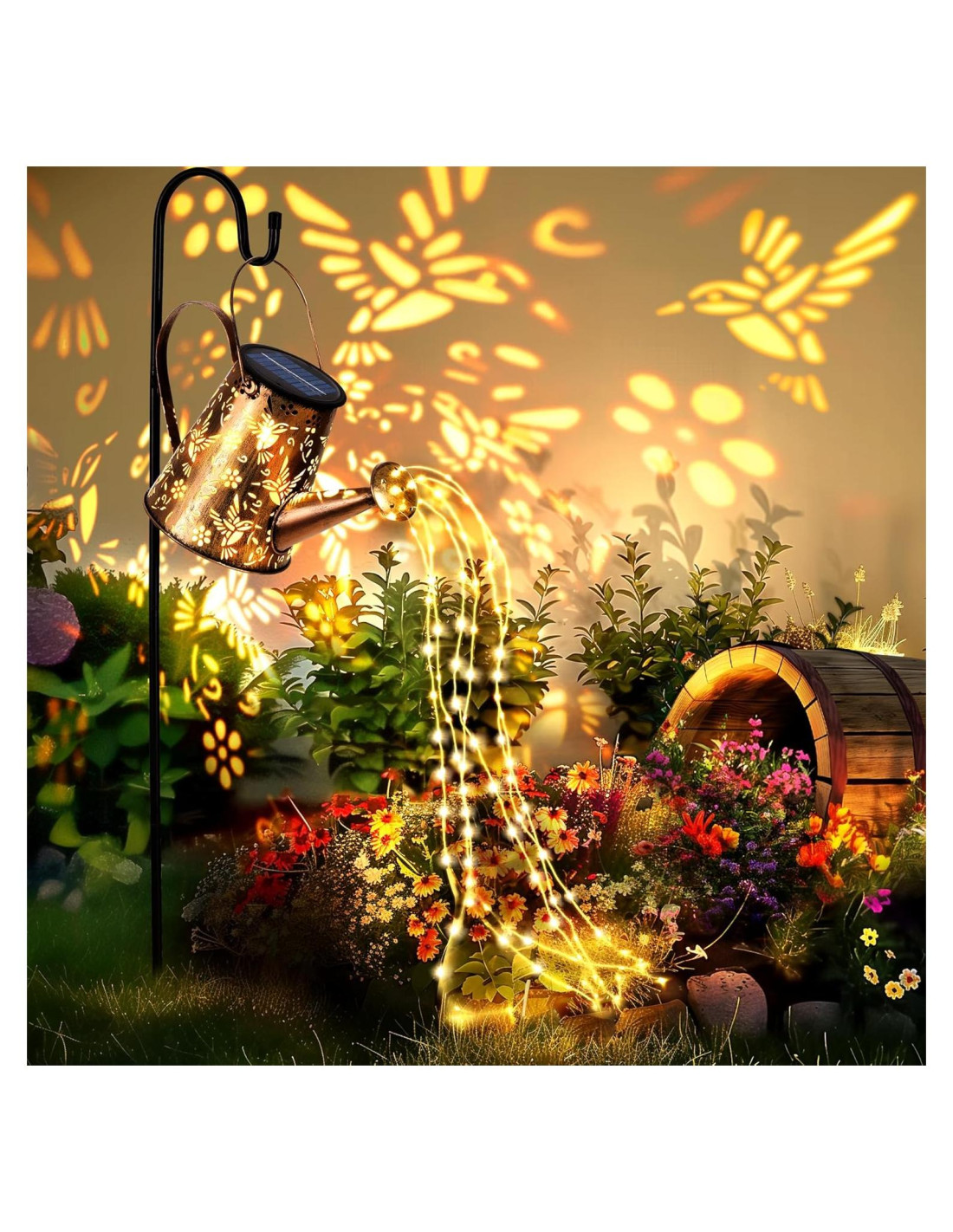 - Decoración Exterior Única: Las Luces Solares para Jardín con un diseño único de regadera y recorte de colibrí, proyectando puntos de luz en múltiples direcciones. Las hebras de luz del pico imitan el riego y se pueden usar en combinación con vegetación, esculturas