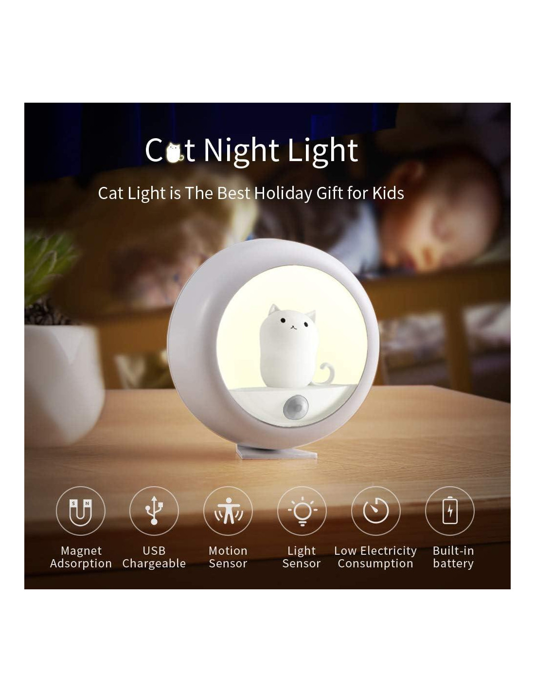 - [Decoración del Hogar] Esta luz nocturna de gato tiene un diseño elegante y lindo. Tiene luz blanca natural de 4000K y los colores complementarán su decoración del hogar existente. El brillo se puede ajustar al 20% y 100% respectivamente.