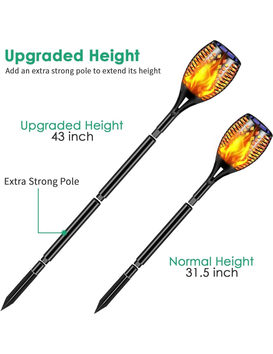 - Antorchas Tiki de Llamas Más Altas y Grandes: Estas luces solares para exteriores ofrecen una alternativa impresionante a las 'llamas' reales, hay LEDs en la luz que emiten un brillo cálido, suave y que mejora el estado de ánimo. Tenga en cuenta que la altura real del artículo es de 43 pulgadas (109,22 cm). Nuestras luces solares para jardín son la manera perfecta de realzar el paisaje de su hogar