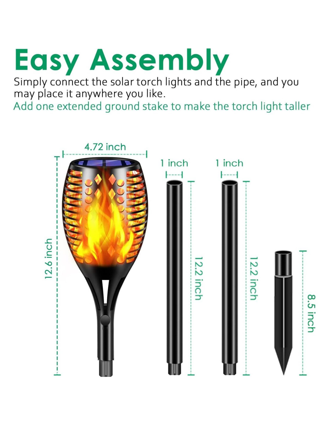 - Fácil Instalación: No se requiere cableado, simplemente instale las luces navideñas donde desee y disfrute de las luces de antorcha solares con llamas parpadeantes. Si tiene alguna pregunta sobre nuestras luces de camino decorativas, contáctenos de inmediato y haremos nuestro mejor esfuerzo para resolver su problema