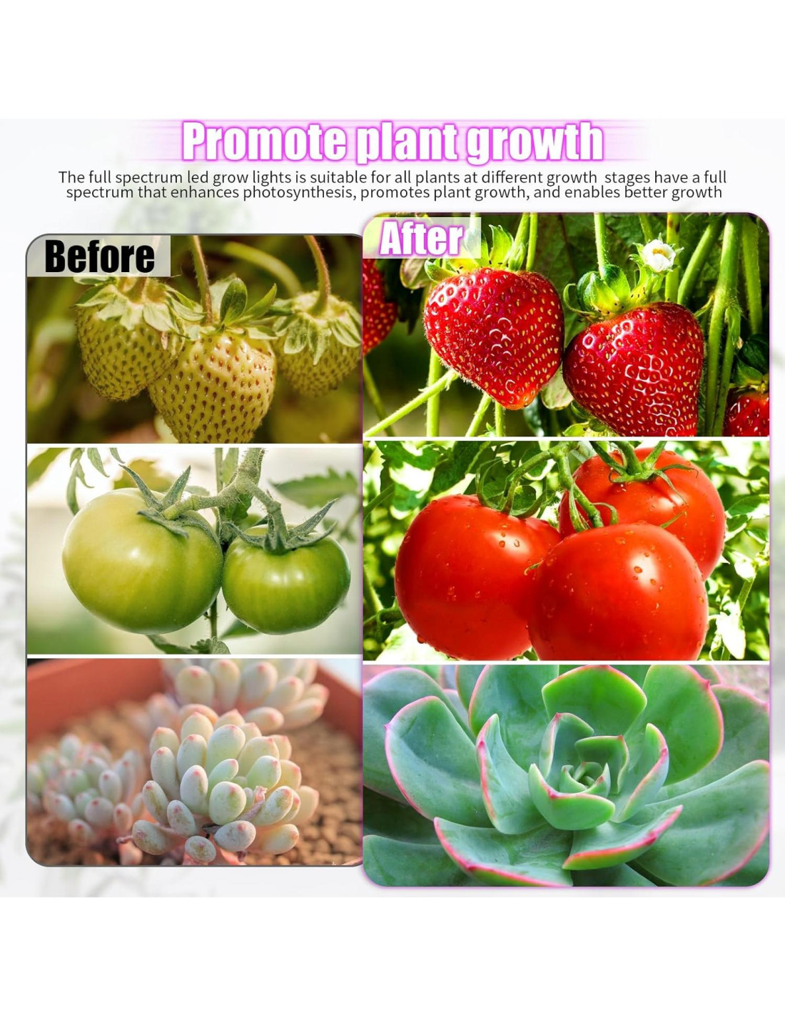 - Función de Temporización: Las luces de cultivo tienen función de temporización de memoria cíclica, el producto se abrirá y cerrará automáticamente, puedes configurar 3 horas, 6 horas, 12 horas, no necesitas operación manual, puedes cuidar mejor de la planta.