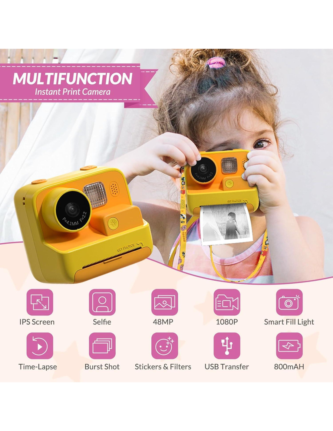 - Cámara Instantánea para Niños, Sin Tinta: La cámara instantánea para niños adopta tecnología de impresión térmica. Presiona una tecla para imprimir las fotos sin cartuchos de tinta ni tóner. 3 rollos de papel para impresora, para hasta 180 fotos, es libre de BPA, amigable con la piel y fácil de reemplazar. Pantalla IPS de 2 pulgadas (5,08 cm) es mejor para cuidar los ojos de tu hijo. TODO ES POR LA SALUD DE LOS NIÑOS.