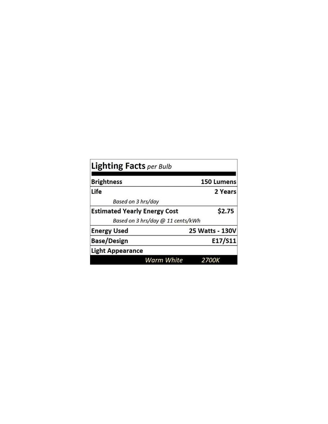 - Especificaciones de la bombilla - bombilla de 130V 25 vatios, S11, base E17, 150 lúmenes, bombilla de luz blanca cálida 2700K
