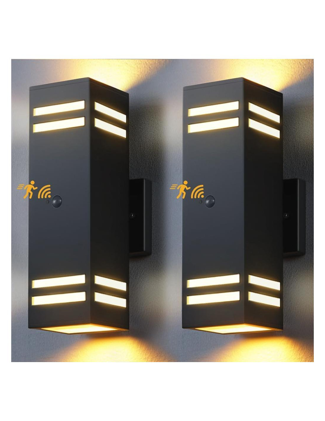 - AMPLIO RANGO DE DETECCIÓN - Equipado con un sensor de movimiento sensible, este aplique de pared exterior puede detectar movimiento hasta 4.88 metros (16 pies) de distancia con un ángulo de detección de 120. Las bombillas LED regulables de 3000K incluidas proporcionan una luz cálida y acogedora, ahorrándote la molestia de comprar bombillas por separado. Este amplio rango de detección asegura que tus áreas exteriores estén bien iluminadas, mejorando la visibilidad.