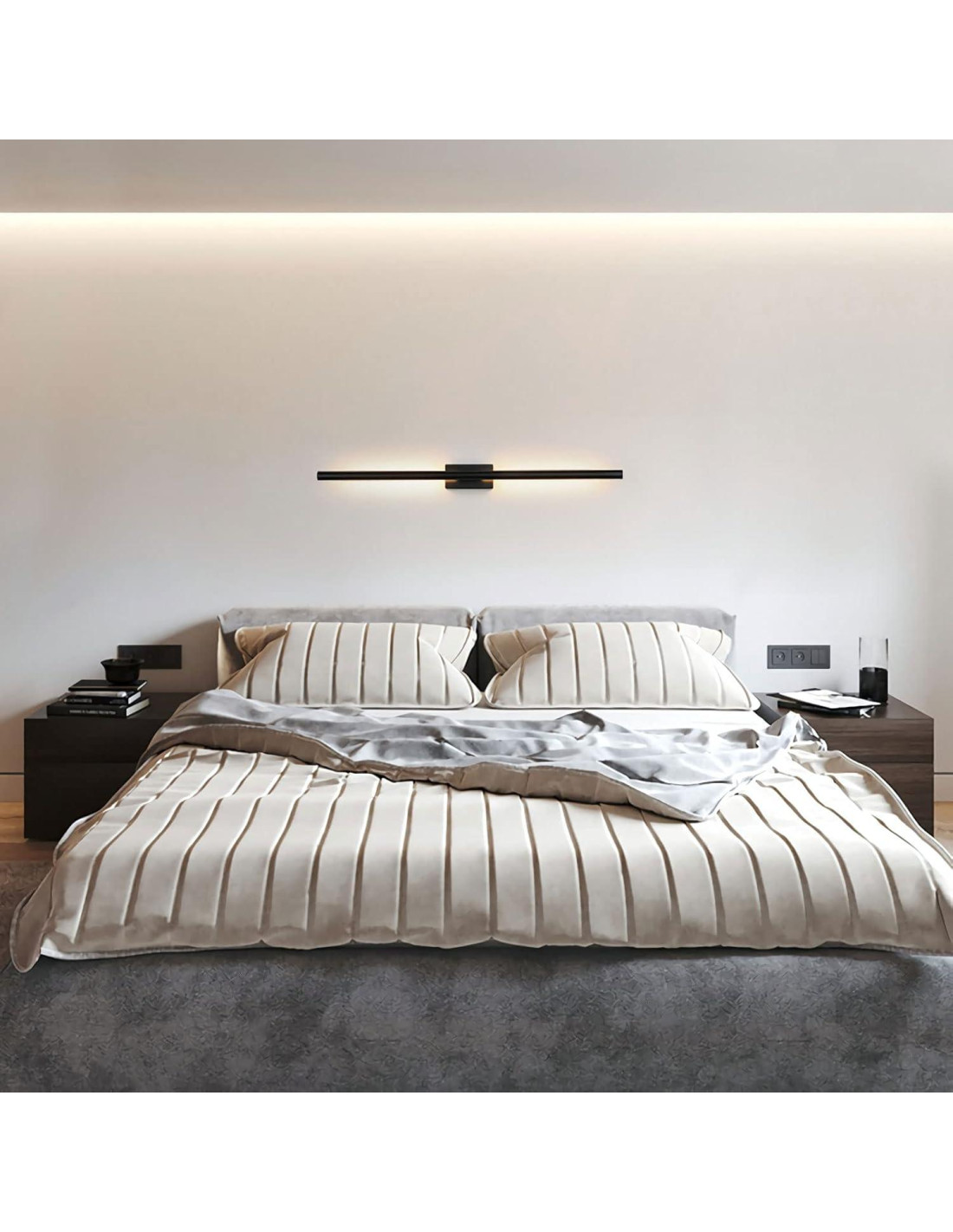 Dos conjuntos de luces de pared de tira delgada negra se refieren a dos pares o colecciones de accesorios de luz estrechos y lineales que están diseñados para ser montados en una pared. Estas luces típicamente tienen una estética moderna y elegante y a menudo se utilizan para iluminación ambiental o de acento en varios espacios como salas de estar, dormitorios o corredores. Un par de luces de tira de pared delgadas y negras, diseñadas para integrarse perfectamente con diseños interiores contemporáneos. Estas luces podrían ser adecuadas tanto para uso residencial como comercial. Este tipo de luces de pared se utilizan típicamente para resaltar ciertas áreas o crear una atmósfera elegante y discreta en la habitación. También son ideales para espacios donde se desea luz sin que los accesorios voluminosos interrumpan el flujo visual. Diseño simple de tira larga, diseño sencillo que irradia ese toque suave, la extravagancia simple y delicada redefine la apariencia y la estética. Chasis de hierro de alta calidad. Acabado de esmalte horneado a alta temperatura, fuerte y estable, seguro y duradero. Fuente de luz LED de tira de alta calidad preferida, segura y confiable, color de luz suave, alta eficiencia luminosa, larga vida útil.
