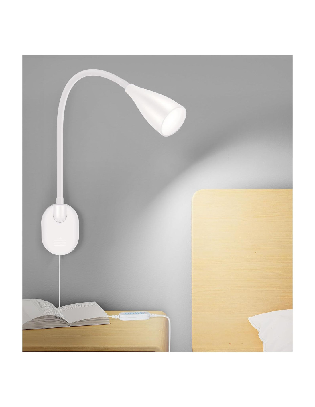 - [Luz de libro de montaje en pared multifuncional] Lámpara de lectura montada en la pared de doble propósito que sirve como luz de tarea. Presenta 14 LEDs de alto CRI con 5 modos de color regulables (cálido/natural/frío) para lectura enfocada. El cuello de ganso reforzado soporta ajustes repetidos. Temporizador opcional de 30 minutos ahorra energía. Ideal como reemplazo de lámparas de mesita de noche voluminosas.