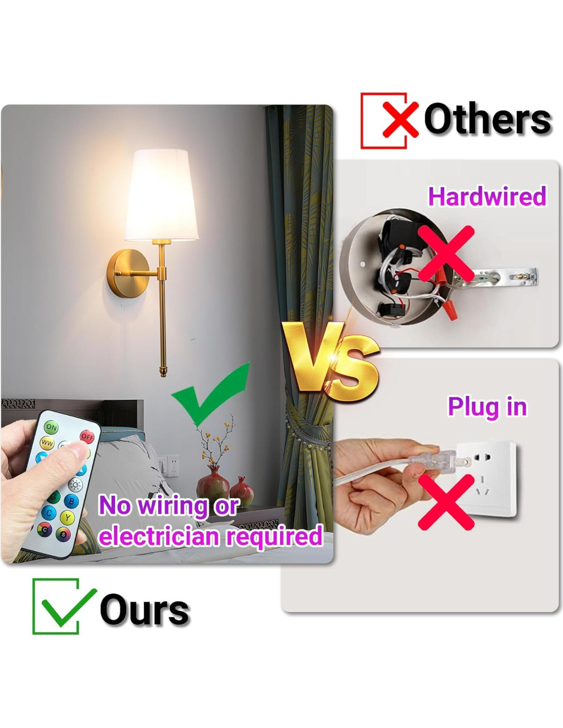 - Aplique de pared inalámbrico, fácil de instalar: Las luces de pared a pilas para interiores no requieren cableado ni electricista, incluye todo el hardware de montaje para una instalación rápida y fácil del aplique de pared a pilas, el accesorio de luz de pared a pilas con bombilla y control remoto incluidos. Estos apliques son invaluables para cortes de energía.