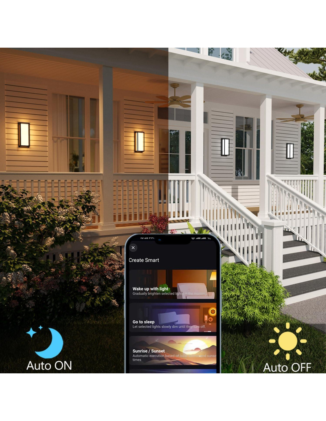 - Aplicaciones Versátiles: Con una altura de 13 pulgadas (33,02 cm) y listado ETL. Estas luces de pared exteriores al anochecer sirven no solo como elementos de iluminación sino también como elementos decorativos para tu hogar. Ideales para puerta, entrada, jardín, puerta principal, porche, uso residencial y comercial, transforma tus espacios exteriores con la solución de iluminación inteligente perfecta.