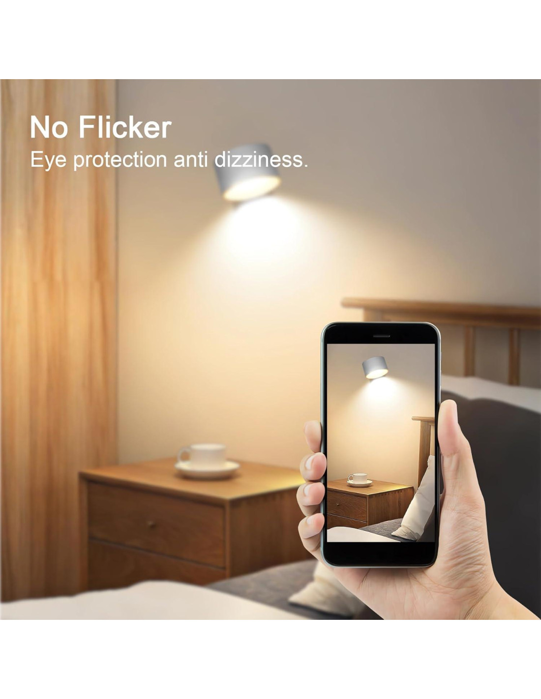 - Luz de Pared Inalámbrica con Control Táctil: Lámpara montada en la pared regulable que ajusta el brillo y el modo de luz de la lámpara de pared inalámbrica con el toque del botón de encendido. Mantén presionado el botón de encendido para ajustar la temperatura de color: 2700K (luz cálida), 4000K (luz natural), 5700K (luz blanca). Presiona brevemente el botón de encendido para ajustar el brillo: luz baja, luz media, luz alta. El sconce de pared inalámbrico recuerda el último modo de luz utilizado para mayor comodidad al usarlo nuevamente.