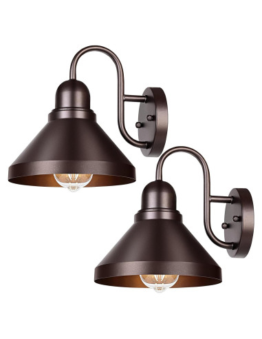 - Diseño Simple, Elegante y Único - Aparte de ser utilizadas en exteriores, estas lámparas de pared clásicas y populares también combinan perfectamente con la decoración interior. Las líneas elegantes, el acabado marrón dorado y los brazos en forma de cuello de cisne ofrecen un aspecto minimalista que se adapta a esquemas de decoración Moderna, Industrial y Rústica. Además, nuestras lámparas de granja son compatibles con todas las bombillas de base E26 (no incluidas), lo que añade diferentes sensaciones hermosas a tu hogar.