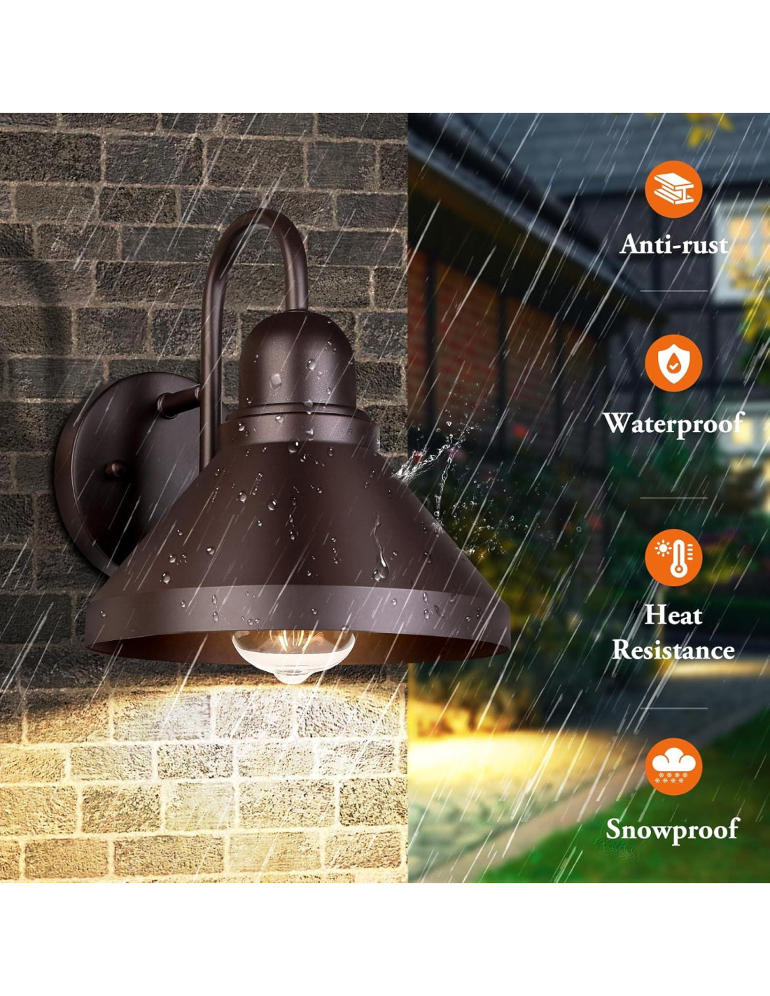 - Gran Calidad por el Precio - Nuestras lámparas exteriores están hechas de excelentes materiales metálicos, con un proceso de recubrimiento en polvo de alta tecnología, que es superior a otras lámparas pintadas. Garantizamos que los productos que recibas están cuidadosamente producidos y estrictamente inspeccionados. Más que eso, estas luces de granja están empaquetadas cuidadosamente con todo lo necesario para la instalación. No tienes que gastar un centavo extra en ellas.