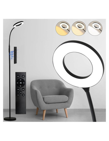 - [Atenuación Sin Escalas y Memoria Inteligente] A diferencia de otras lámparas de pie negras atenuables, nuestras lámparas altas modernas de 12W 1000LM cuentan con brillo atenuable sin escalas del 10%-100% y 3 opciones de temperatura de color (cálido, blanco cálido, blanco) que van desde 3000K a 6500K. La luz de lectura para la esquina de la sala de estar tiene una función de memoria inteligente que retiene tus últimos ajustes de brillo y temperatura de color, y una función de temporizador para apagarse automáticamente después de 30 minutos o 1 hora, añadiendo conveniencia a tu vida diaria.