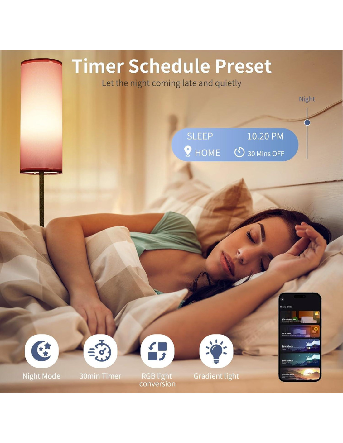 - [Control APP: DIY y Sincronización con Música] Puedes elegir un color favorito y ajustar la temperatura del color usando la aplicación. La lámpara de pie para dormitorio también tiene una función de ritmo musical que cambia los colores y el brillo para coincidir con el ritmo de la música. ¡Es una forma divertida de animar tus fiestas con una increíble experiencia de música y luz!