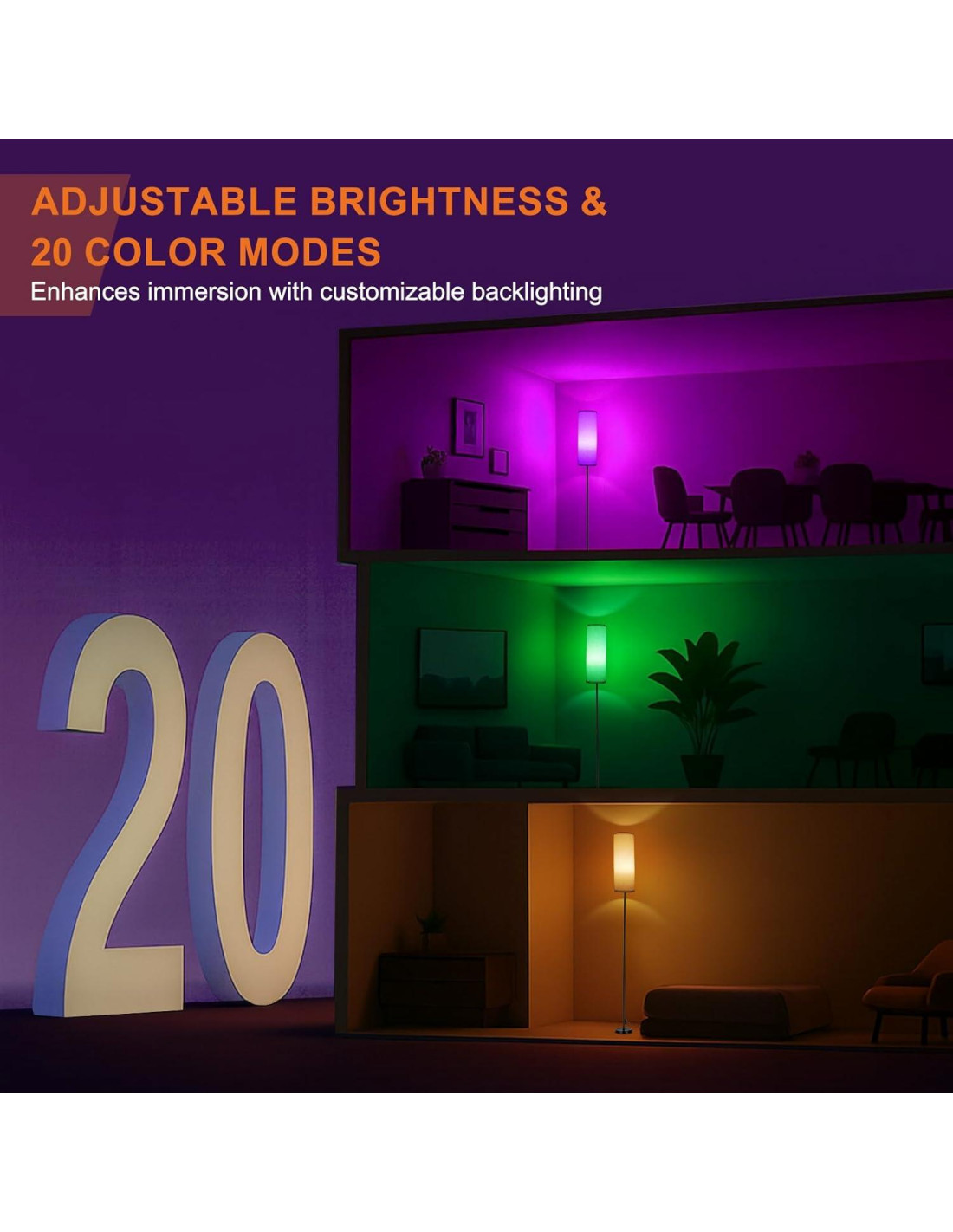 - [Varios escenarios de uso] Esta lámpara de pie LED brillante es perfecta para crear una atmósfera relajante para diversas actividades. Ya sea que estés organizando una reunión, disfrutando de una noche de cine o jugando, puedes establecer el ambiente justo. La capacidad de personalizar el color y el brillo te permite adaptar la iluminación a cualquier ocasión, convirtiéndola en una adición versátil a cualquier habitación.