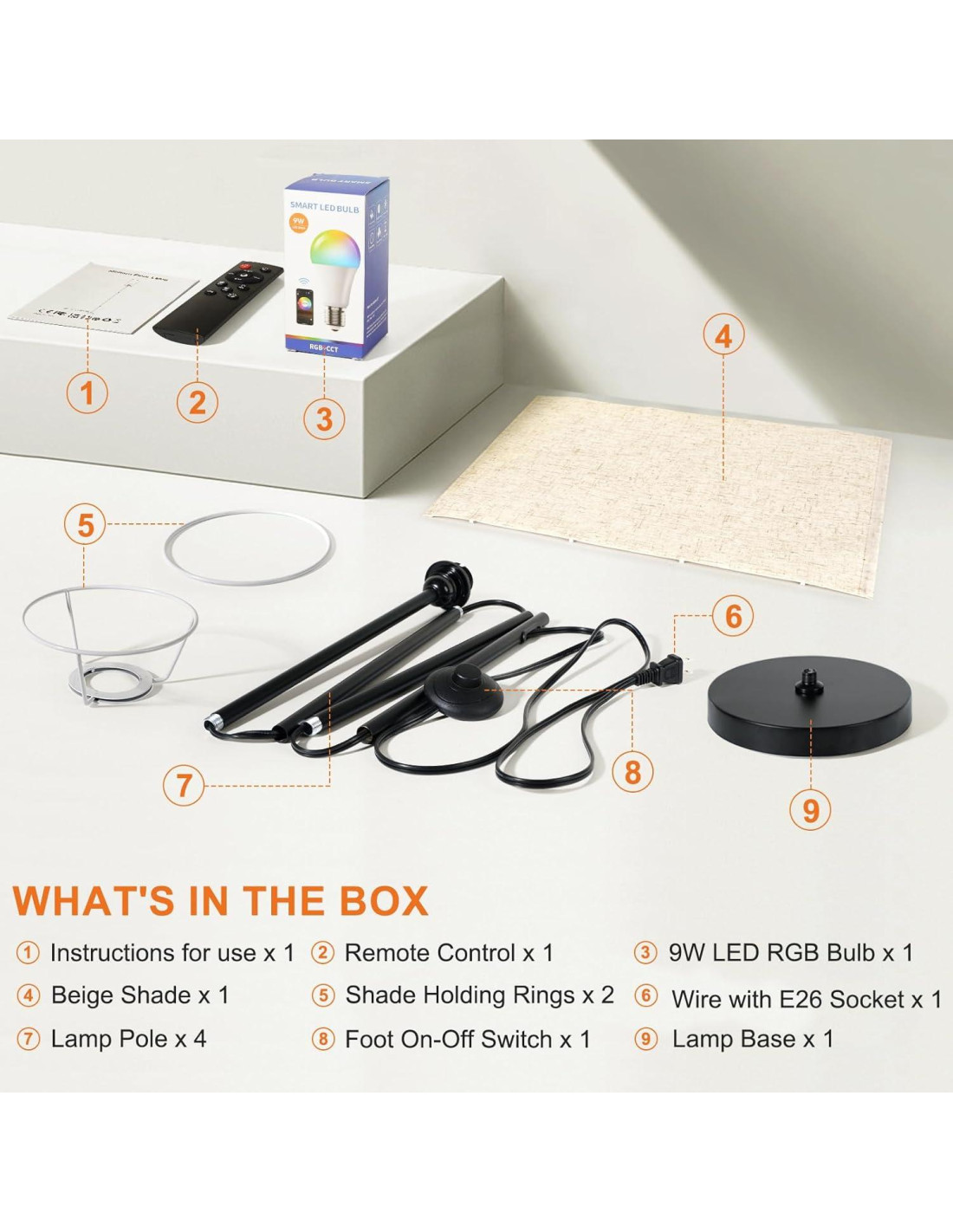 - [Fácil instalación] La lámpara de pie alta es fácil de instalar, no se necesitan herramientas adicionales. Solo sigue las instrucciones para enroscar todas las partes, ¡y estarás listo para disfrutar de la decoración de iluminación personalizable para Halloween y Navidad! Ideal para regalos para chicas adolescentes.