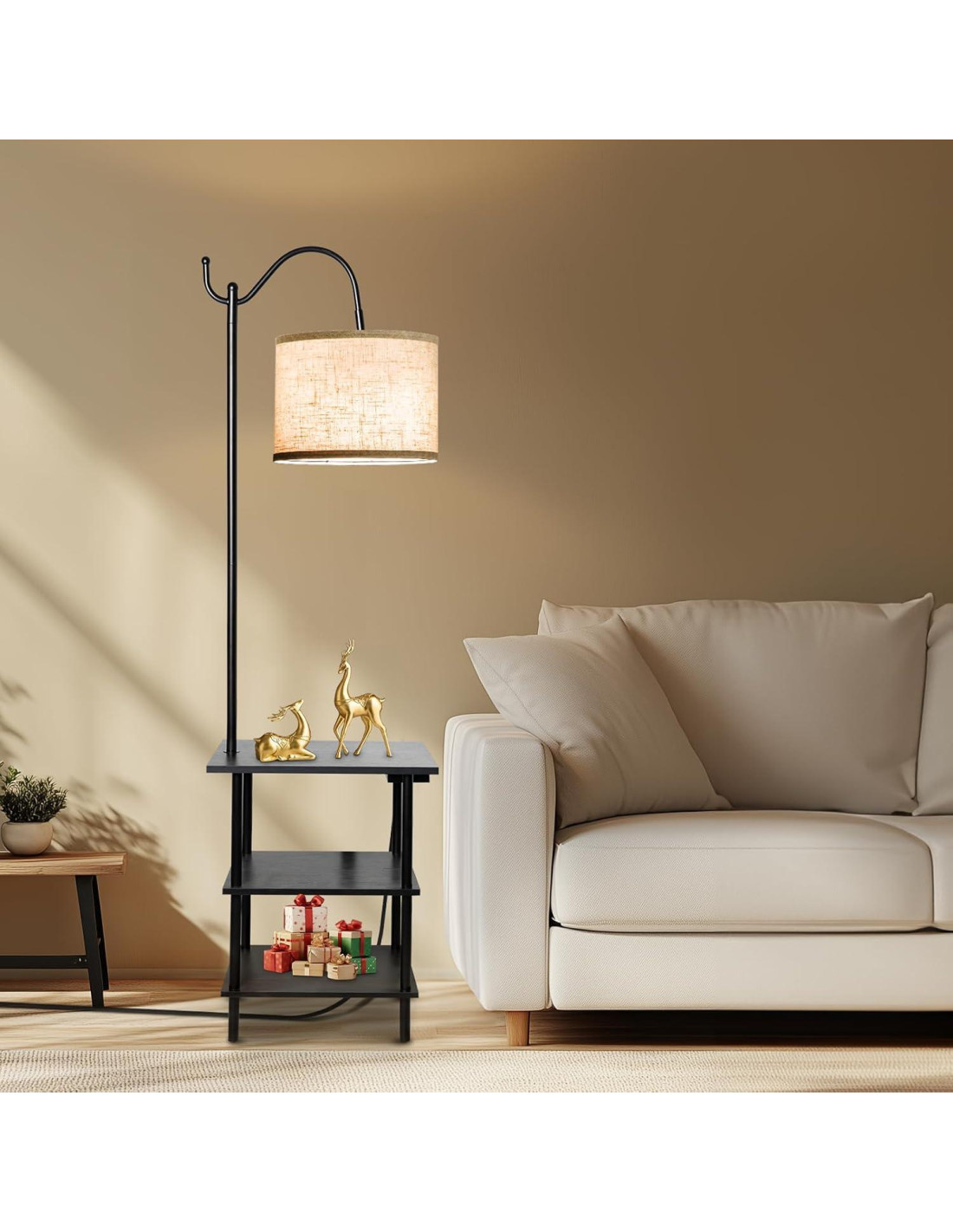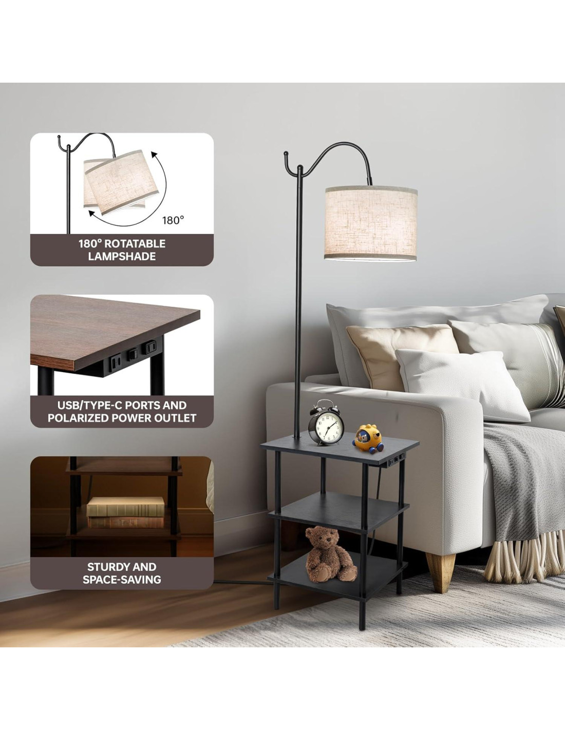 - Funcional y Ahorra Espacio: La lámpara de mesa con estantes se combina con estantes de gran capacidad de 2 niveles, que proporcionan más espacio de almacenamiento para colocar tus teléfonos móviles, libros, tabletas, laptops, bocadillos, bebidas u otras cosas, optimizando y agregando más espacio de manera efectiva para espacios pequeños. Además, la mesa lateral con lámpara se puede colocar al lado de la cama, al lado del sofá, al lado del televisor o al lado del sillón según tu preferencia personal para satisfacer tus diferentes necesidades