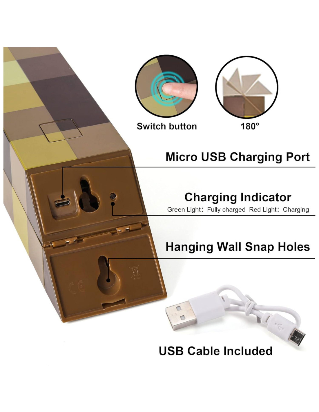- Diseño de juego de cosplay - Esta pieza de decoración de habitación bien diseñada es el diseño auténtico de la antorcha de píxeles de piedra marrón del juego. Puedes ponerla en una mesa plana como lámpara de escritorio o instalarla en la pared como decoración.