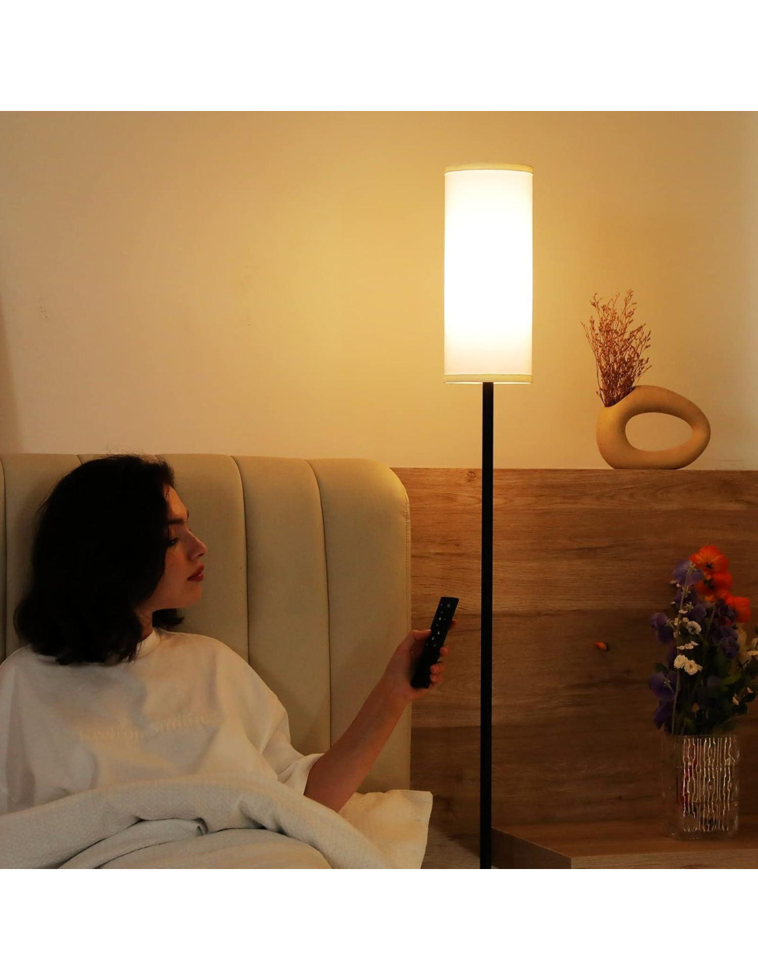 - [LÁMPARAS DE DORMITORIO CON TEMPORIZADOR DE 1H Y FUNCIÓN DE ADSORCIÓN MAGNÉTICA]: Esta lámpara de pie alta utiliza una función de temporizador de una hora que te ayuda a ti y a tu bebé a dormir fácilmente sin necesidad de control. El control remoto es magnético, por lo que es muy fácil de pegar en una superficie metálica y siempre saber dónde está. Sugerimos que coloques el control remoto en el poste de la lámpara de pie para evitar perderlo.