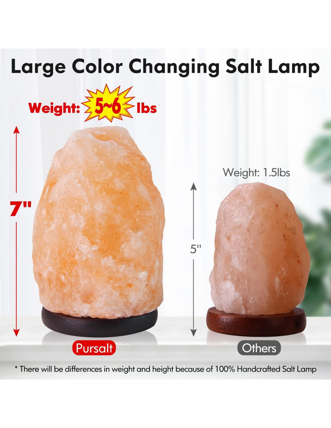 Las lámparas de sal que cambian de color Pursalt están hechas de sal de roca cristalina del Himalaya 100% original y seleccionada a mano, que es una decoración del hogar perfecta y única y un regalo para la familia y amigos.
