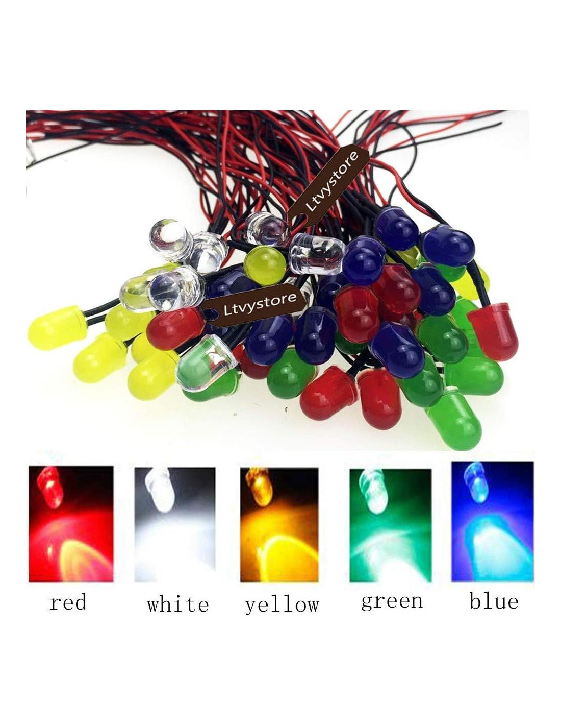 - Lo Que Obtienes: 50pcs diodos LED de múltiples colores Pre Cableados 8MM Bombilla Luz Diodo Emisor Pre Cableados + 50Pcs Soporte de Bombilla LED 8MM