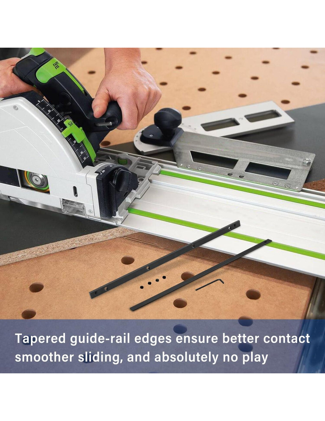 - Compatibilidad: El conector de sierra de carriles es perfectamente adecuado para una variedad de aplicaciones de carpintería utilizando rieles guía y plantillas de Festool, Makita 39" (99.06 cm), 55" (139.7 cm) y 118" (299.72 cm), DeWalt y Triton. Proporcionando un esquema confiable y duradero para extender el riel.