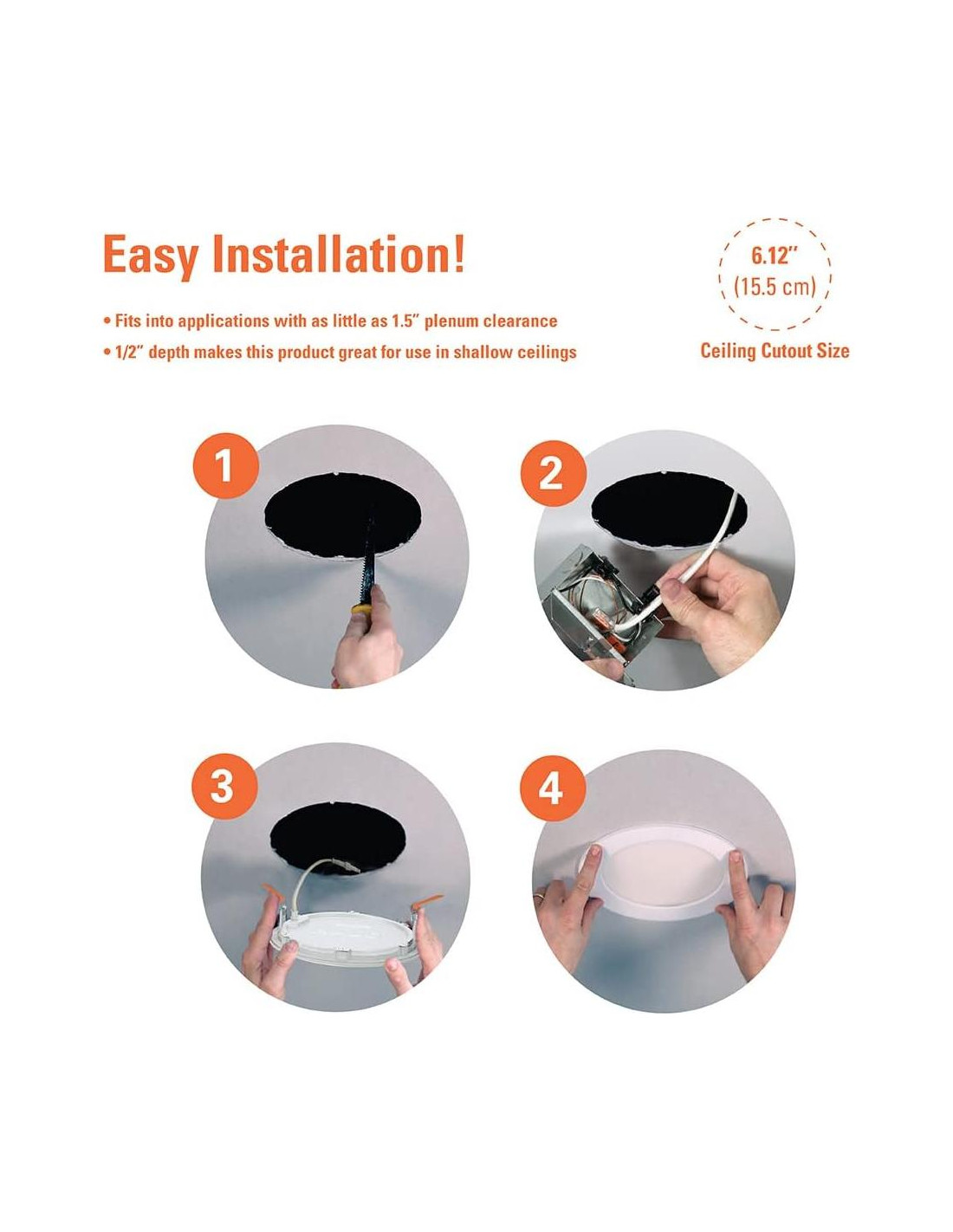- ULTRA DELGADO Y HERMÉTICO: El artefacto tiene menos de 1/2" (1.27 cm) de grosor y se monta directamente en el techo, evitando obstáculos como vigas y ductos, con un ajuste hermético; clasificado para contacto con aislamiento